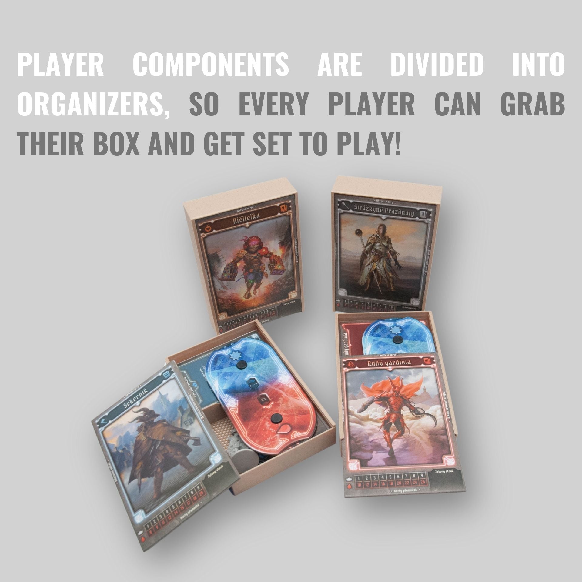 Inserts are also designed for storing sleeved cards, so it is recommended to provide the cards with sleeves to protect the cards from damage and contamination. We recommend the following amount of sleeves for this game: