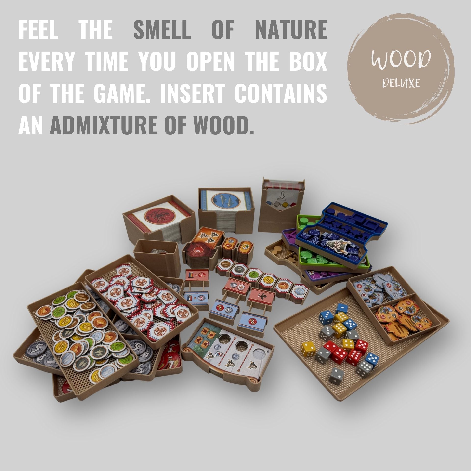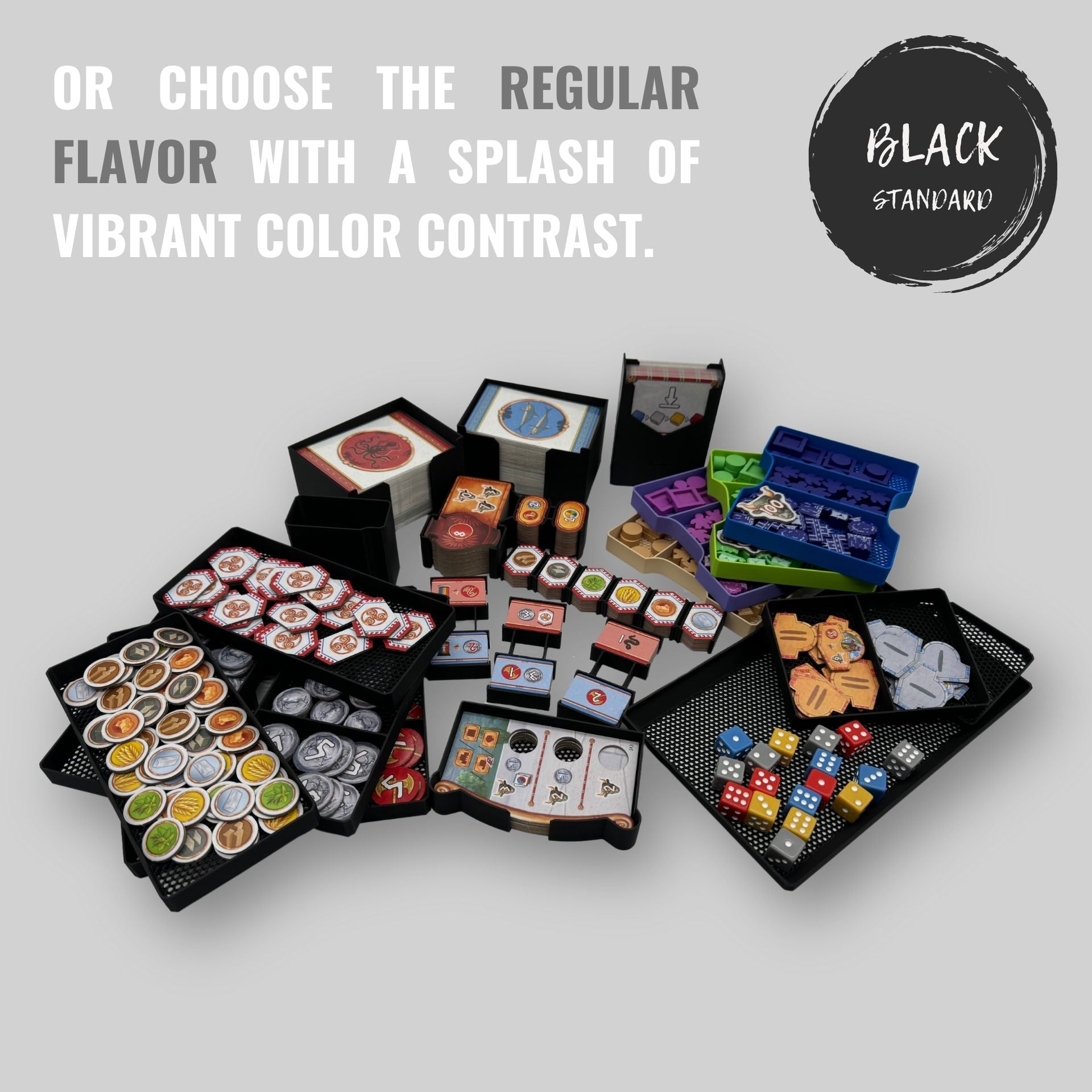 • Much of the components can also be used during play, such as the dice tray, card box, or token organizers to speed up setup.