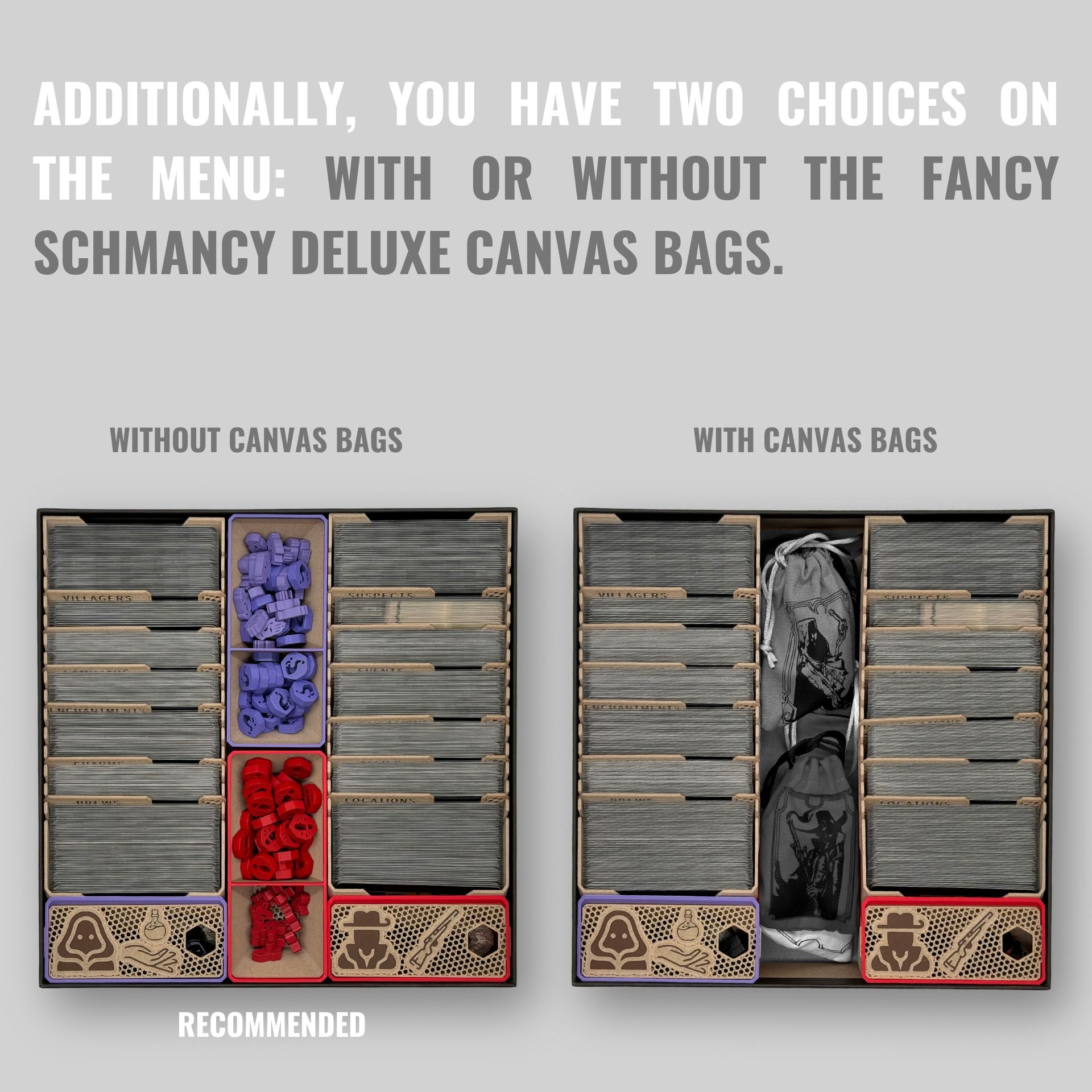 • Without canvas bag (recommended to speed up game preparation - players' tokens are already sorted)