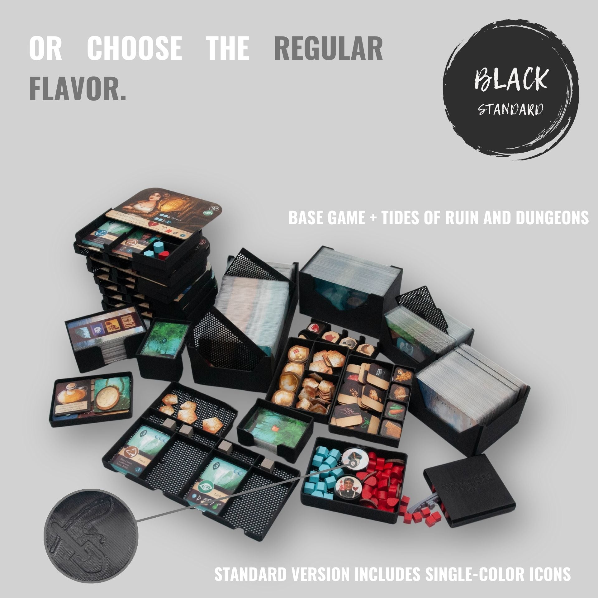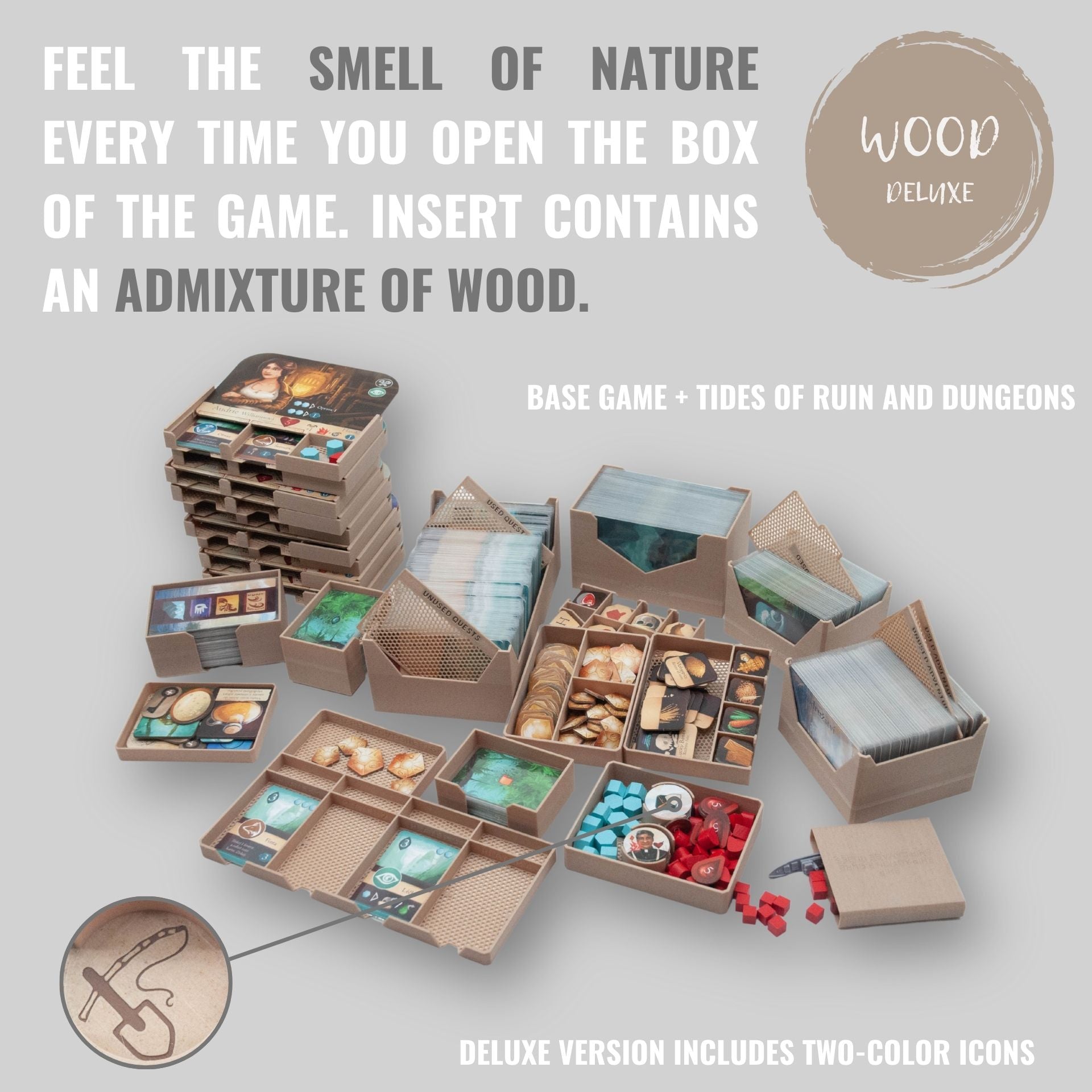 3D printed insert for board game Sleeping Gods (2021) including expansions Dungeons and Tides of Ruin.