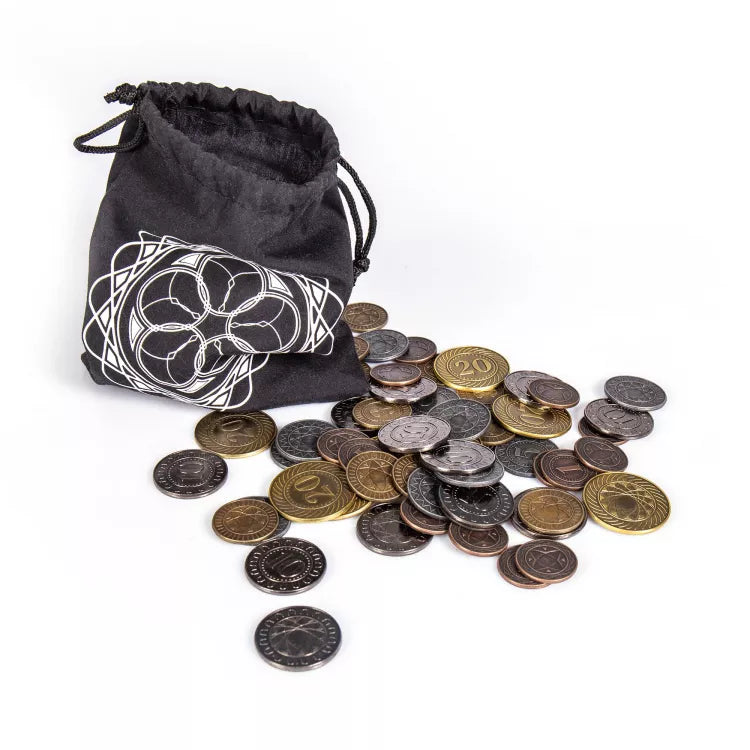 A set of high quality metal coins with a universal motif, designed to enhance your boardgame experience.